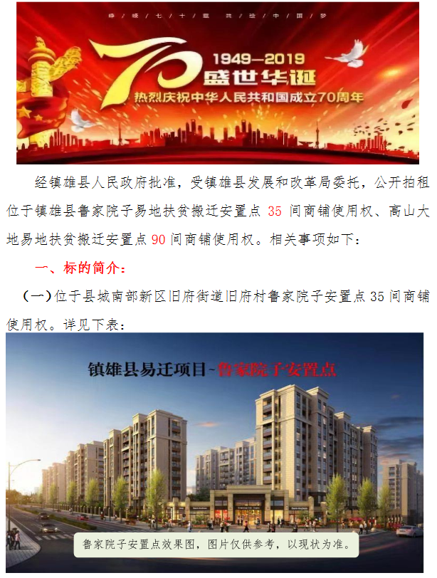鎮(zhèn)雄縣易地扶貧搬遷魯家院子安置點(diǎn)、高山大地安置商鋪使用權(quán)拍租公告