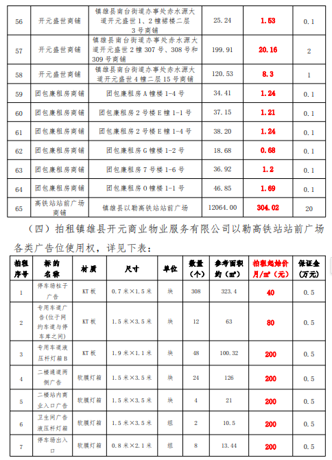 鎮(zhèn)雄縣國有資產(chǎn)使用權(quán)拍租公告
